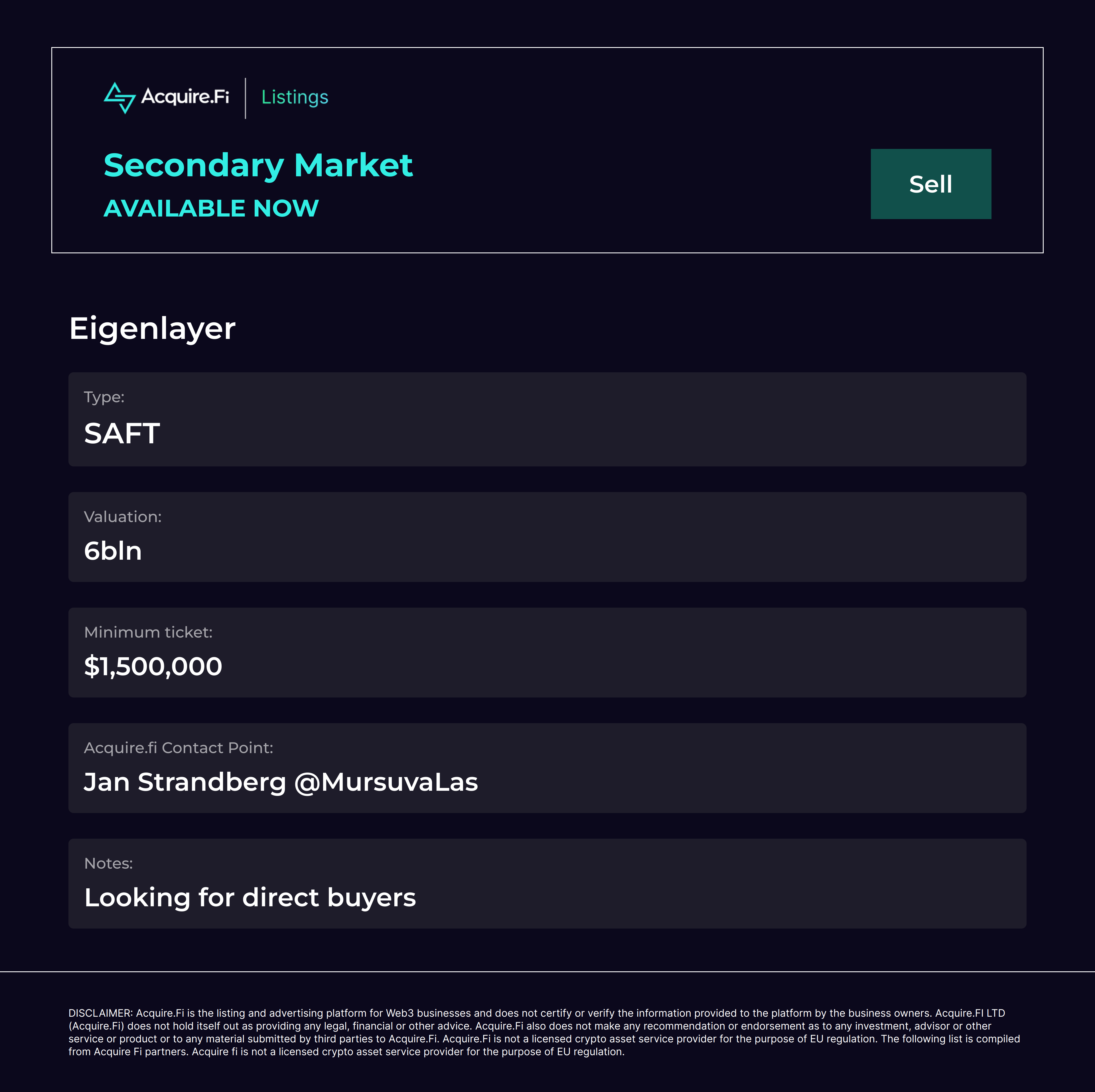 Secondary Market Sell: Eigenlayer.